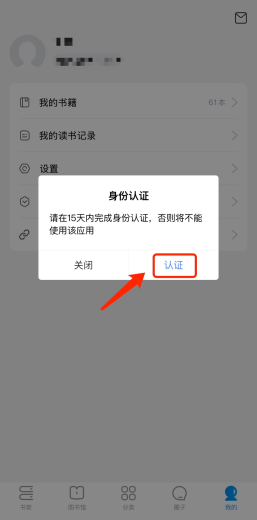 未认证的读者进入平台内会自动跳出认证弹窗(需在15天内完成认证)