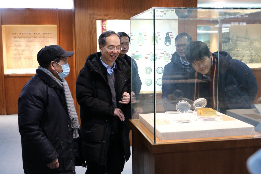 在金融博览馆,周卫荣一行认真欣赏了馆内藏品并察看货币金融馆、金融票据馆及一带一路货币展区的建设情况,并仔细询问相关展品情况,了解了学校概况与校金融博览馆作为浙江省社会科学普及示范基地和浙江省非物质文化遗产传承教育基地在服务师生、服务社会等方面的工作成果,赞扬了学校将馆藏资源与教学资源对接,开展特色化教育教学,将中华优秀传统文化与品质潜移默化地根植于师生心中。