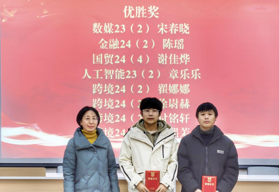 今年,我校共有36位同学参加信息素养大赛浙江省选拔赛,获得了一等奖1名,二等奖1名,三等奖3名的好成绩,并且共有13位同学在省赛中取得名次。颁奖仪式是对获奖同学的嘉奖,也是对来年更好成绩的期望。希望获奖同学能够再接再厉,也欢迎其他同学在明年的信息素养大赛中积极报名参加,更好地展现金院学子的风采。