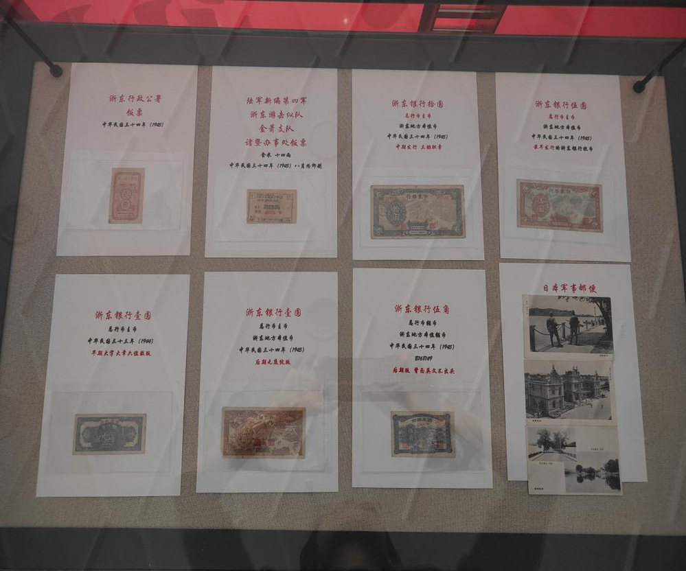 作为货币文化节的重头戏,一场名为“烽火印痕 赤币遗珍——纪念抗日战争胜利八十周年浙东红色金融货币展”在校图书馆二楼同时开展。浙东作为全国十九块重要解放区之一,凭借丰饶物资与水陆要冲优势,成为红色金融试验田。本次展览聚焦浙东抗日根据地红色金融货币的历史脉络,通过八十多件实物陈展与图文介绍的方式,生动展现了抗战时期浙东地区红色金融体系的建立与发展,系统呈现根据地财政金融体系的诞生历程、抗币的印制流通与货币斗争的战略智慧,以及地方政府与民间力量协同作战的鲜活实践,再现浙东军民在党的领导下浴血奋战的峥嵘岁月,揭示红色金融对抗战胜利的深远影响及其对当代金融发展的启示,让参观者深刻感受到革命先辈们在金融战线上的艰辛探索与伟大贡献。