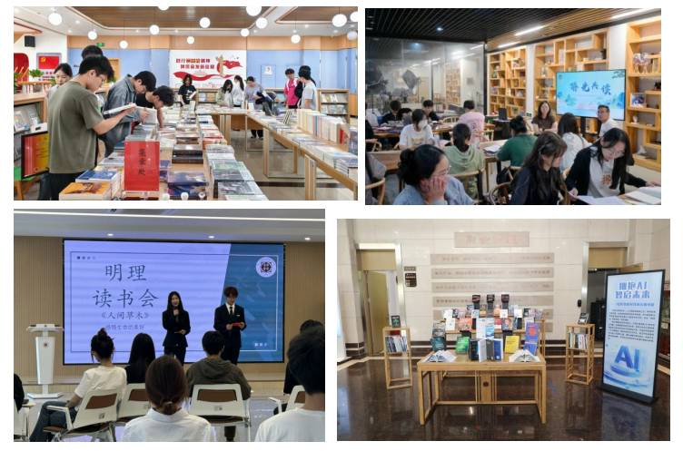 “贯读通汇”篇章旨在通过阅读串联零散知识,助力师生实现知识的融汇贯通,该篇章包含主题书展、读书分享会、图书漂流、阅读打卡、读书笔记征集等多种形式活动,从多方面推动知识积累与体系构建。
