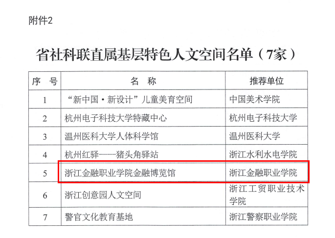 12月9日,浙江省社会科学界联合会公布2025年度省社科联直属基层特色人文空间名单,我校金融博览馆凭借深厚的金融底蕴与独特的资源优势成功入围。这是我校在社科普及与文化阵地建设领域的又一成果。